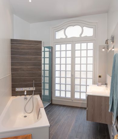 La première particularité réside dans leurs proportions. Les menuiseries haussmanniennes sont généralement hautes et élancées, avec deux vantaux symétriques. Elles sont conçues pour maximiser l’apport de lumière naturelle, un élément central dans l’architecture haussmannienne.